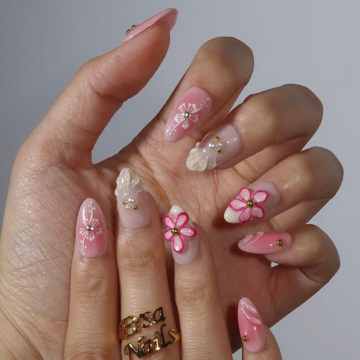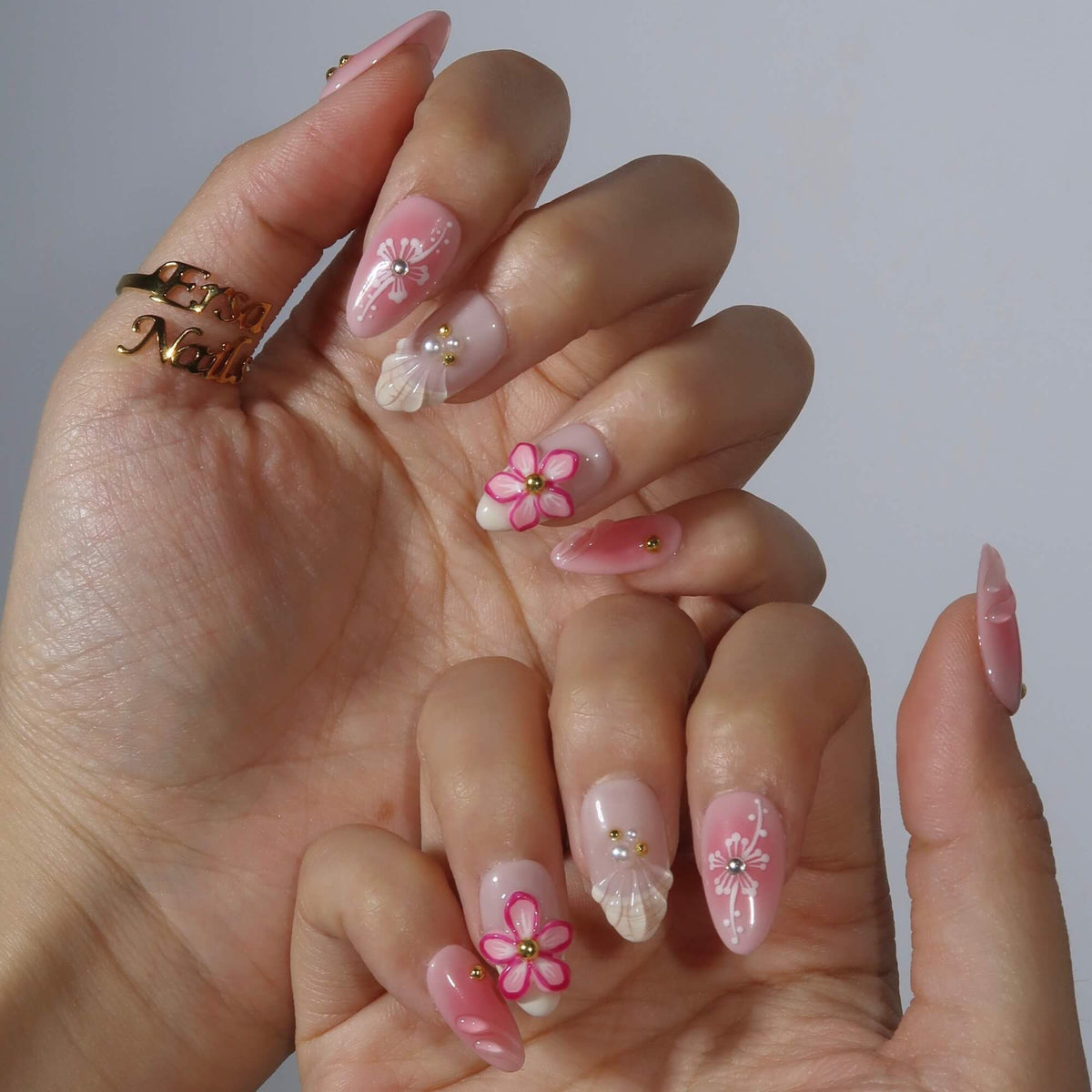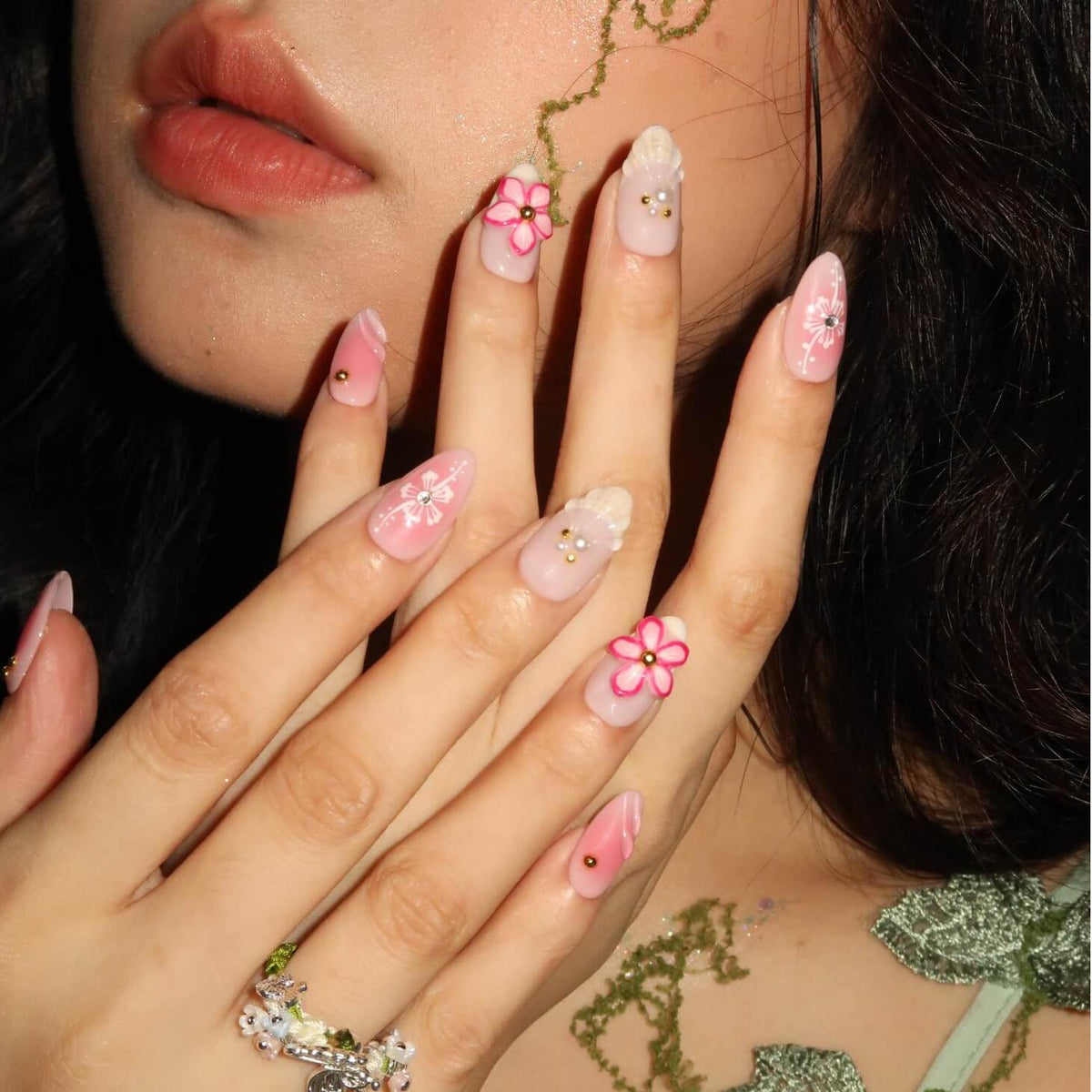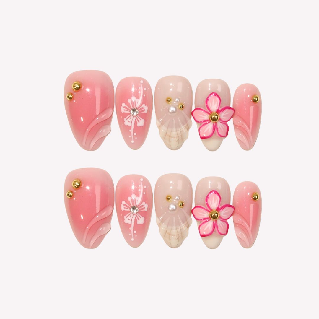 Embrace effortless elegance with Nude Muse from swara Nails. Featuring a soft blend of nude and pastel peach tones, this press-on nails set offers a delicate pink gradient design, adorned with intricate 3D flowers, floral patterns, and charming pearl and gold bead accents. Perfect for those who appreciate subtle beauty, Nude Muse brings a touch of grace and sophistication to any look, making it the ideal choice for everyday elegance or special occasions.