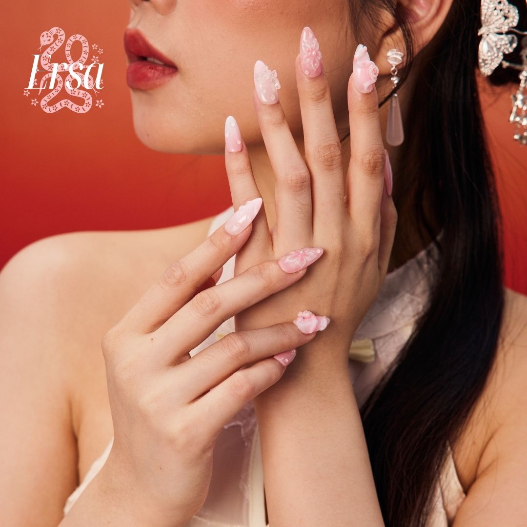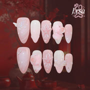 Step into a world of soft elegance with Pink Reverie, a beautiful design from our Snake Year collection. Featuring a delicate blend of pastel pink and white, the nails are adorned with subtle ombre gradients for a soft, dreamy effect. The 3D butterfly, flower, and snake embellishments add a unique touch of charm, creating a sweet yet fierce look. Perfect for those who embrace both beauty and symbolism with grace.