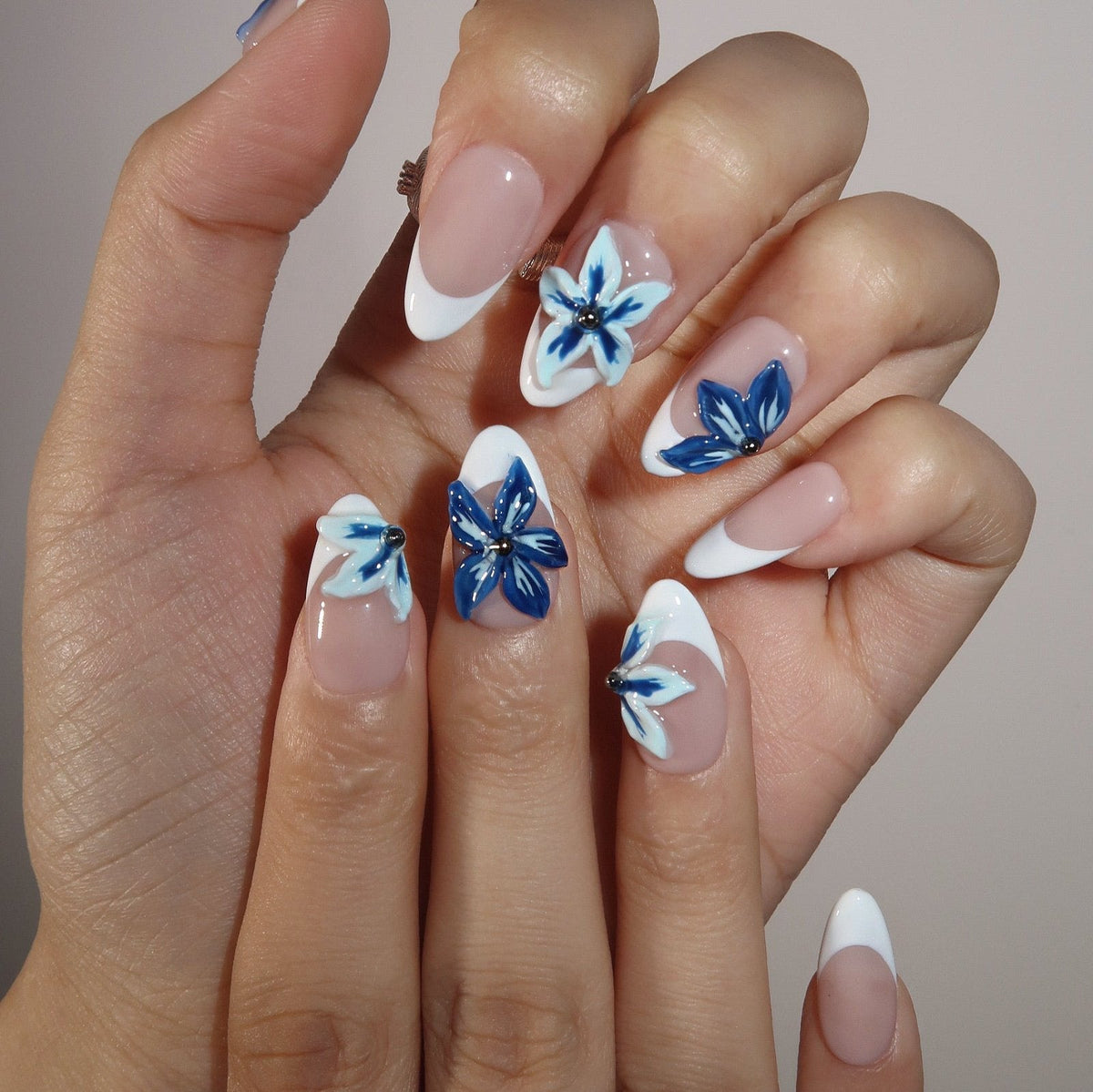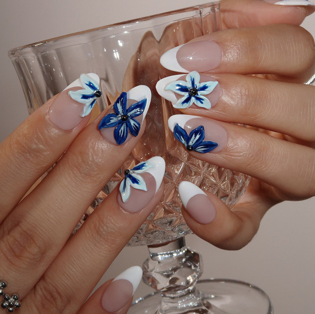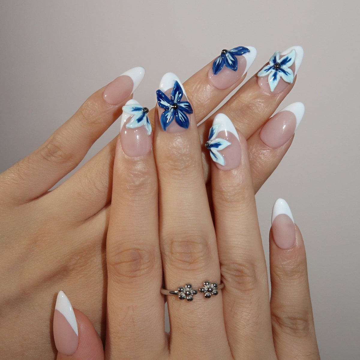 Ride the waves of style with Surf’s Up Press-on Nails by Swara Nails. These nails feature a clean white French tip design, offering a minimalist and elegant look. The addition of 3D blue floral accents adds a touch of oceanic charm, perfect for summer days by the sea. Simple yet stunning, Surf’s Up nails are easy to apply and comfortable to wear, making them the ideal accessory for a fresh and breezy summer vibe.