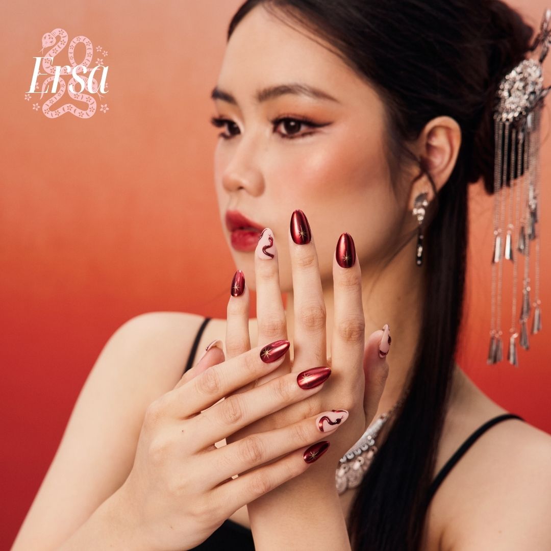 Unleash the power of Ruby Venom, a striking design that fuses bold red hues with a captivating metallic sheen. Inspired by the mystique of serpents, this set features intricate snake motifs that wind gracefully across each nail, symbolizing transformation and strength. The design is further enhanced with golden star accents, adding a touch of celestial magic to the fiery red base. Part of our Snake Year Collection, Ruby Venom embodies both danger and allure, making it the perfect choice for those who dare to stand out with a fierce and empowering look.