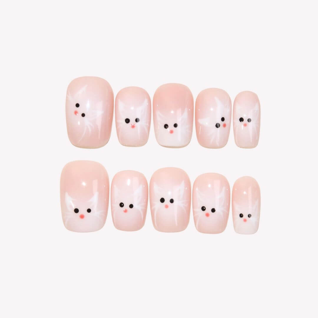 Embrace your playful side with Fluffy Kitty from swara Nails. Featuring a soft pink base adorned with cute white cat illustrations, these press-on nails bring a sweet and whimsical touch to your look. Perfect for those who love all things adorable, this set adds a fun and cozy vibe to your nails, making it a must-have for any cat lover!