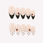 Ladybug by swara Nails is a whimsical press - on nails set designed to enchant. Featuring a soft cream base paired with black polka - dotted accents and adorable ladybug details, it evokes a playful, nature - inspired charm. The contrast of the classic polka dots and the cute ladybug motifs brings a sweet, retro - tinged vibe, perfect for adding a touch of fun to daily outfits or garden - themed gatherings. Delicate yet full of character, it’s an ideal choice for those who love cute, insect - inspired and vintage - leaning styles.